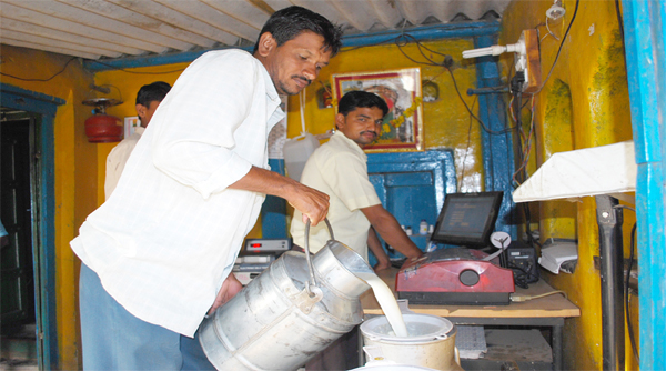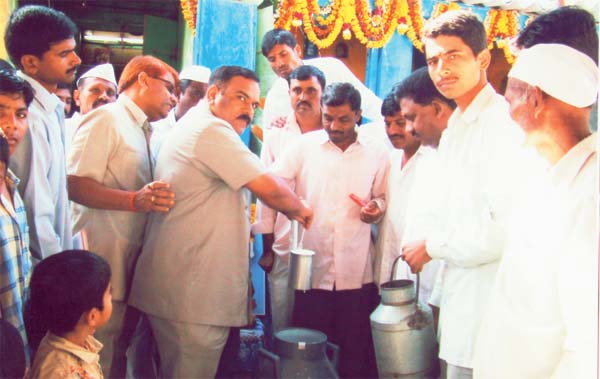 श्री. जगदंबा माता दुध संस्था, कुंदेवाडी मध्ये दुध जमा करतांना दुध उत्पादक सभासद