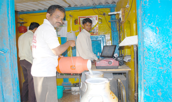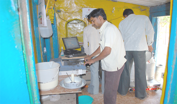 श्री. जगदंबा माता दुध संस्था, कुंदेवाडी मध्ये दुध संकलन करतांना दुधसंस्थेचे कर्मचारी वर्ग